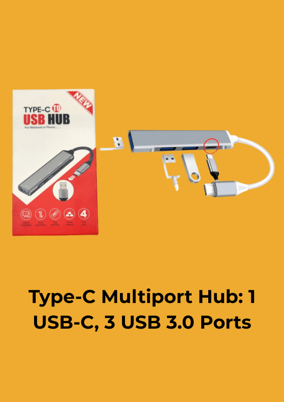 Turn one USB-C port into a powerful workstation! This compact and sleek Type-C Multiport Hub gives you 1 USB-C port for fast charging or data transfer and 3 USB 3.0 ports to connect your keyboard, mouse, flash drives, or any other USB device.