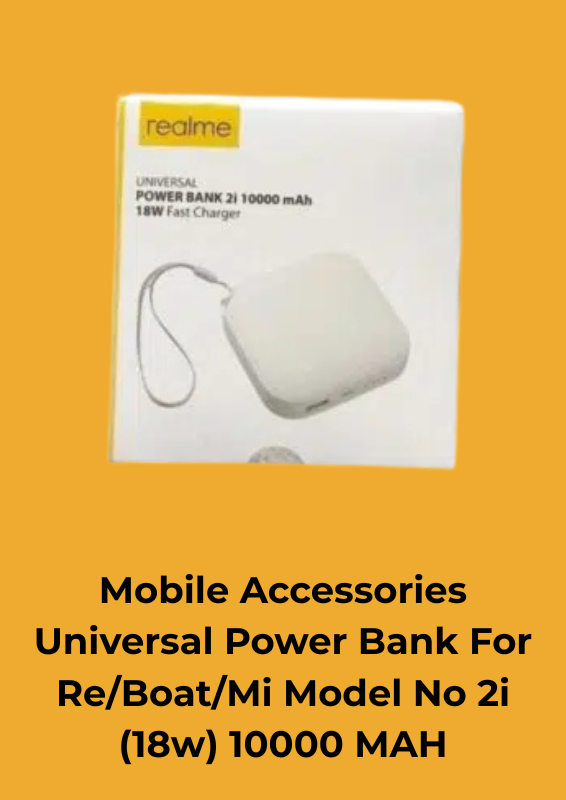 Be the first to review “Mobile Accessories Universal Power Bank For Re/Boat/Mi Model No 2i (18w) 10000 MAH” Cancel reply